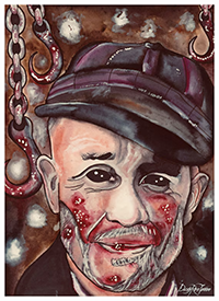Back at the farmhouse he tanned the skin like leather. He was the son of a tanner, after all. He stretched the faces over wooden moulds. He sewed corsets out of female torsos so he could wear the body of a woman over his own. He kept skulls on his bedposts. He fashioned a belt of nipples. He made a lampshade from a face. He drank from a bowl that had once been the top of someone's mother's head.